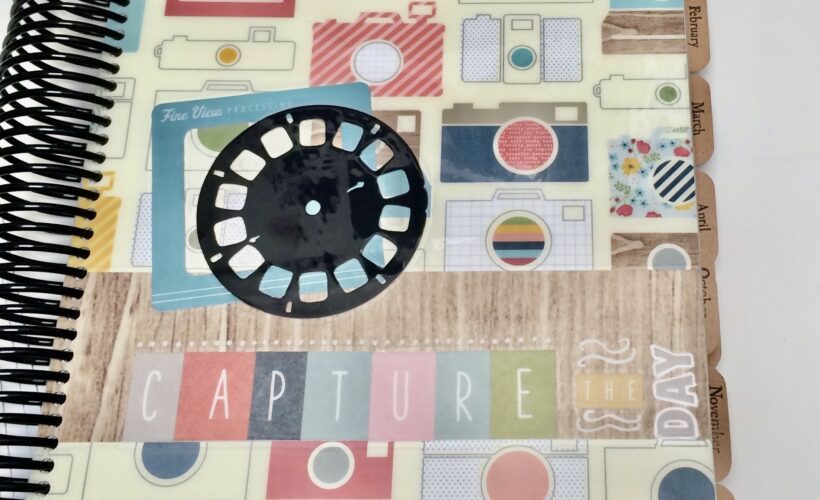 A while back I made planners. For this one I used some camera paper and the quote on the front is “Capture The Day”. I put a view-master reel cut with my Cricut on the cover. I just re-discovered that Cricut file and made it public, as I could not find any others for free on the interwebs. I made…